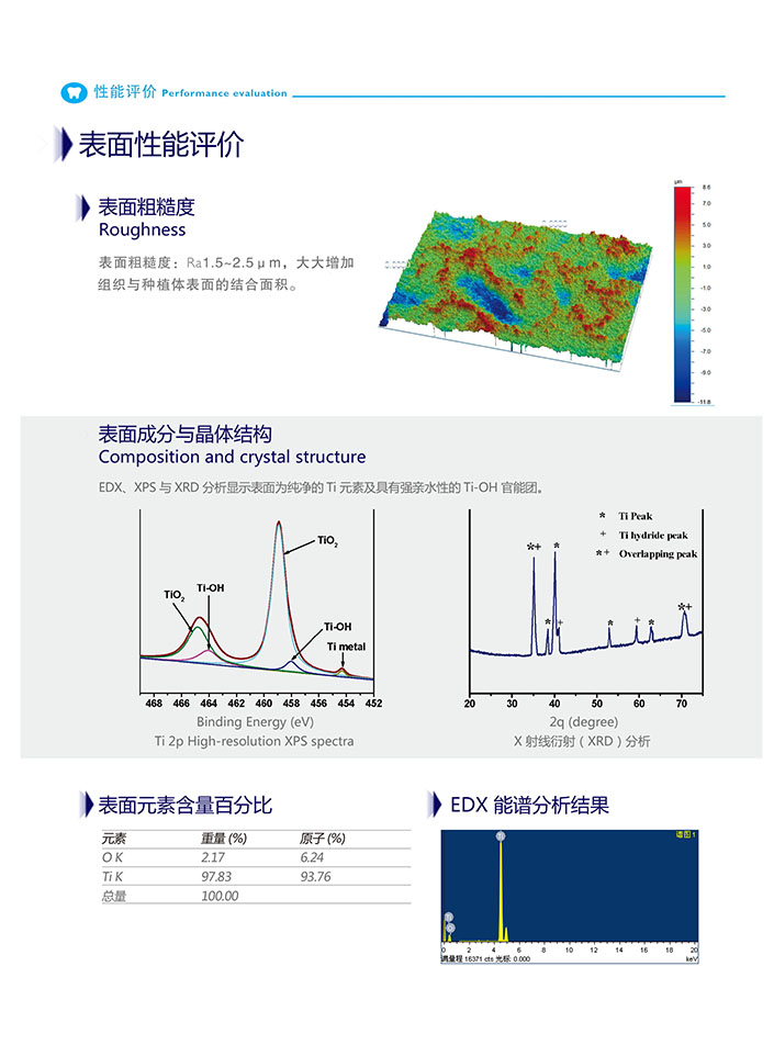 WEGO牙種植體所采用的大顆粒噴砂加酸蝕表面處理工藝,該表面在種植牙領(lǐng)域經(jīng)過了長期的臨床驗(yàn)證。表面呈現(xiàn)蜂窩狀的多級孔洞形貌,均勻分布著20-60μm 尺寸的一級孔洞及2-6μm 尺寸的二級微孔。此表面具有顯著的骨誘導(dǎo)作用,可在愈合早期快速進(jìn)行骨結(jié)合,使得WEGO 牙種植體相比于其他表面的產(chǎn)品表現(xiàn)出更優(yōu)異的初期穩(wěn)定性能。